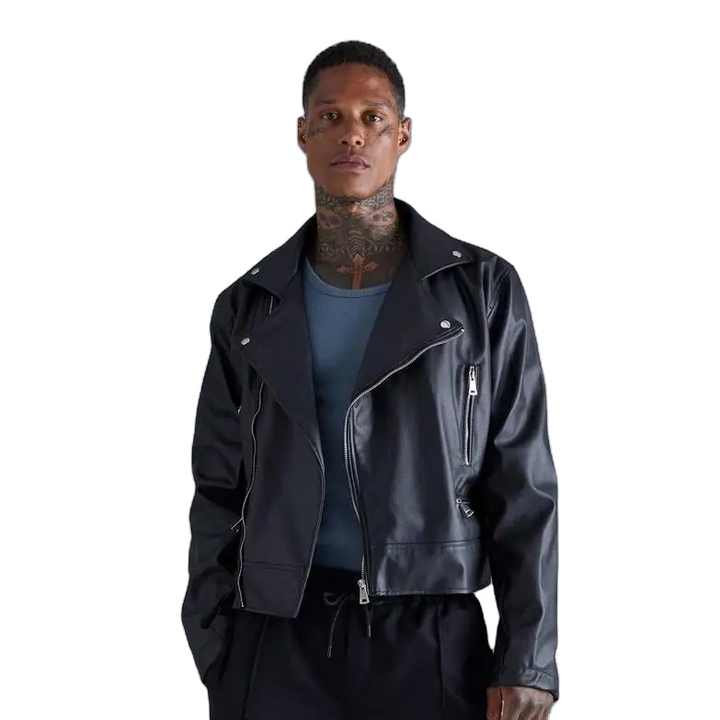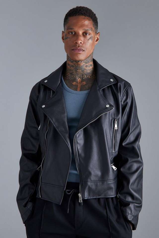 Huzaifa Products Chaqueta de motorista impermeable de cuero de vaca original para Unisex Boxy Fit Black Tall Winter con relleno de algodón