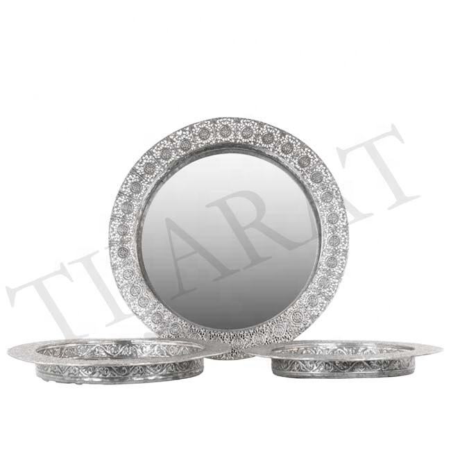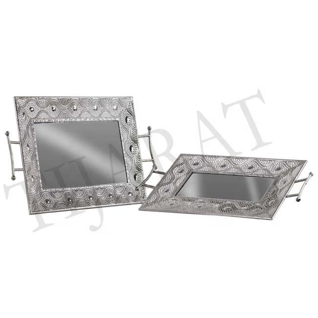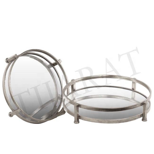 Nueva tendencia desayuno comida al por mayor Color personalizado decorativo té café servir hierro y espejo bandeja para el hogar y hoteles