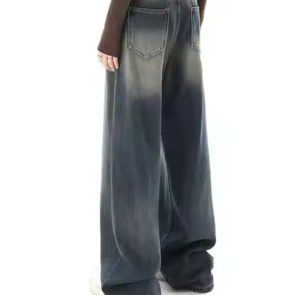 Nueva Tendencia: Jeans Personalizados de Cintura Baja, Pierna Ancha, Estilo Vintage, Holgados, Retro, Rectos, Lavados, para Chicas