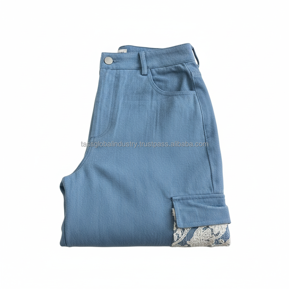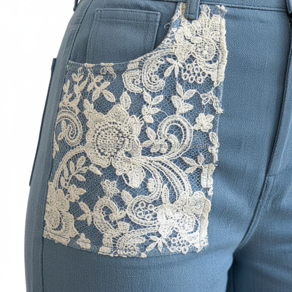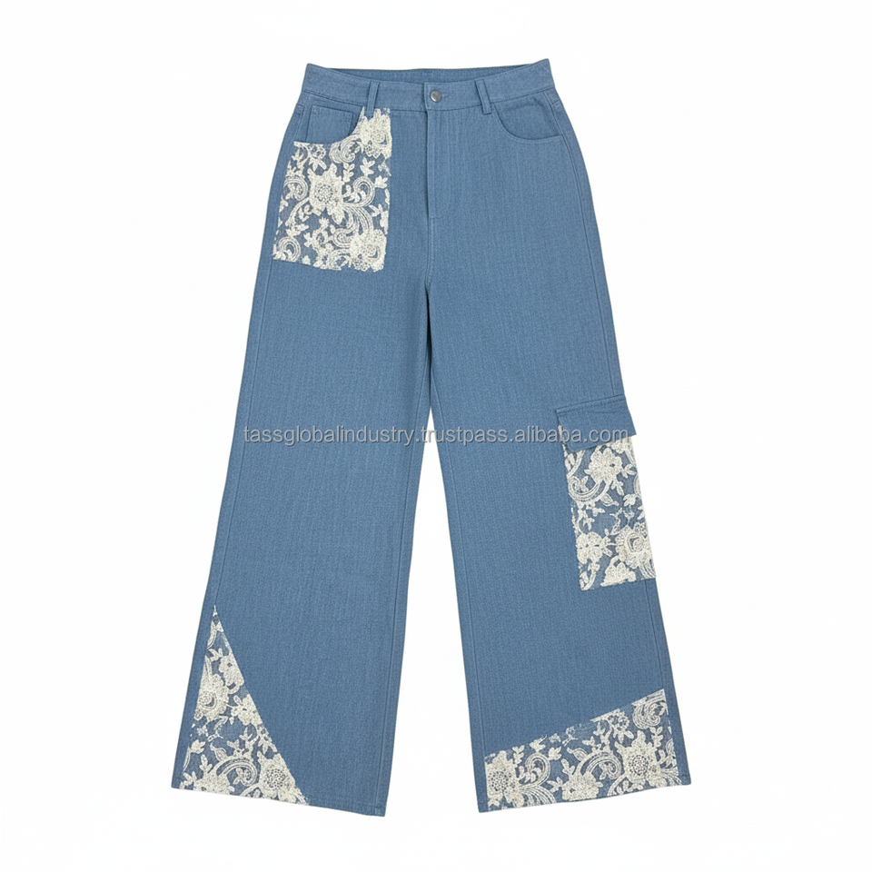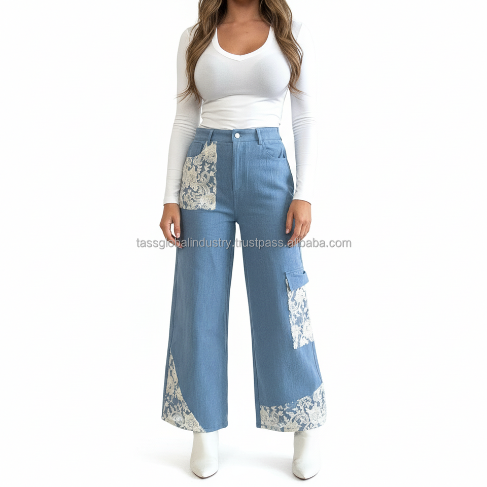 Nueva Tendencia: Jeans Acampanados con Encaje para Mujer, Pantalones Vaqueros Vintage de Pierna Ancha, Transpirables, Estilo Y2K, Ropa Casual Urbana, Logotipo Personalizado de Fábrica