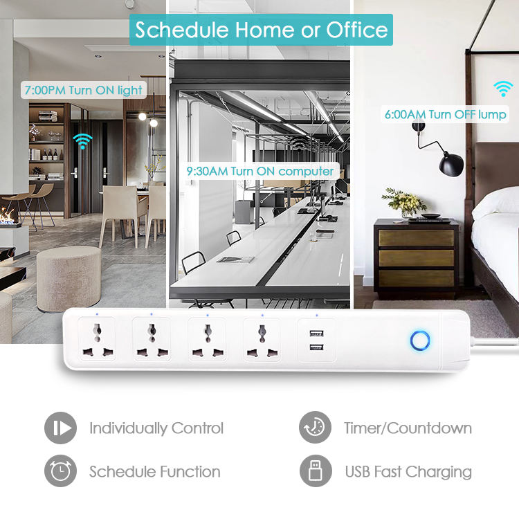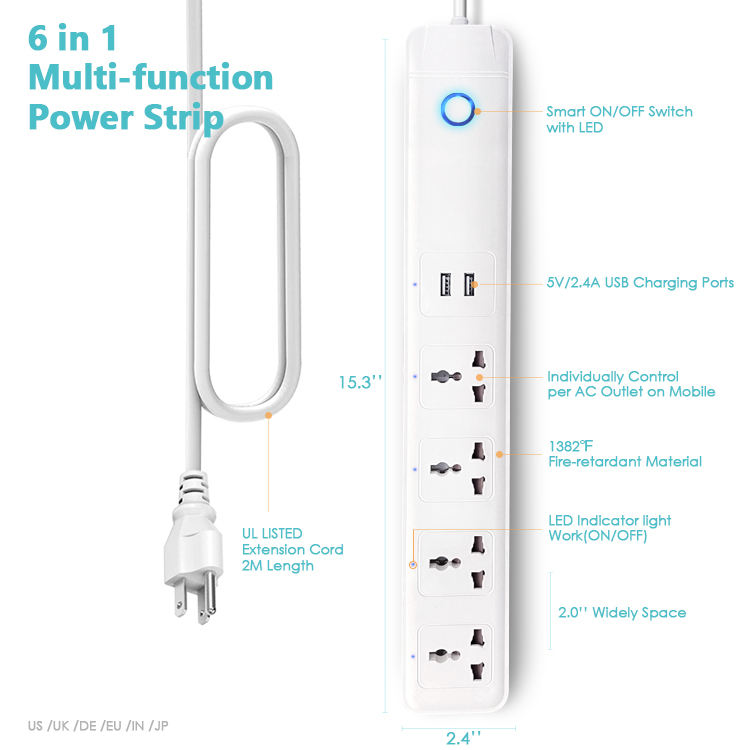Enchufe alemán con 4 tomas de corriente y 2 USB, toma de extensión Universal estándar inteligente, Wifi, nueva tendencia