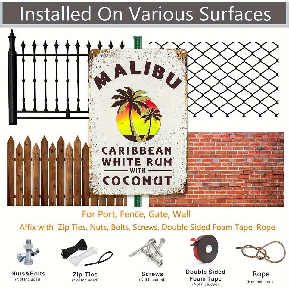 Nueva tendencia Metal Beer Tin Sign para Bar Decoración del hogar Malibu Rum 8 "X 12" Tin Sign