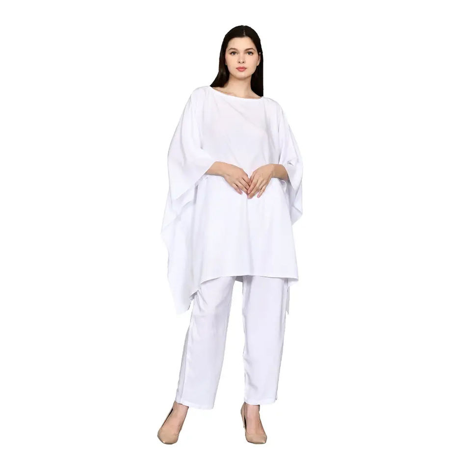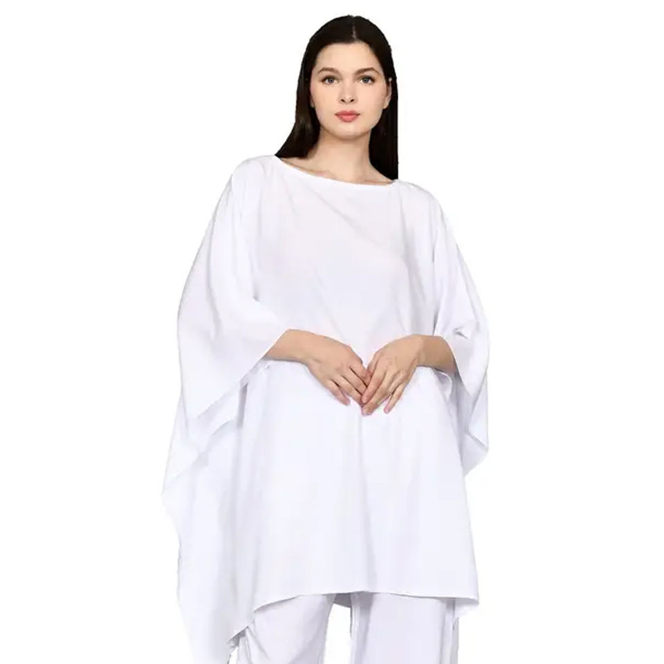 Nueva tendencia sólido cubrir elegante caftán blanco Vestido de playa 100% rayón venta al por mayor personalizado precio barato caftán mujer deportivo verano