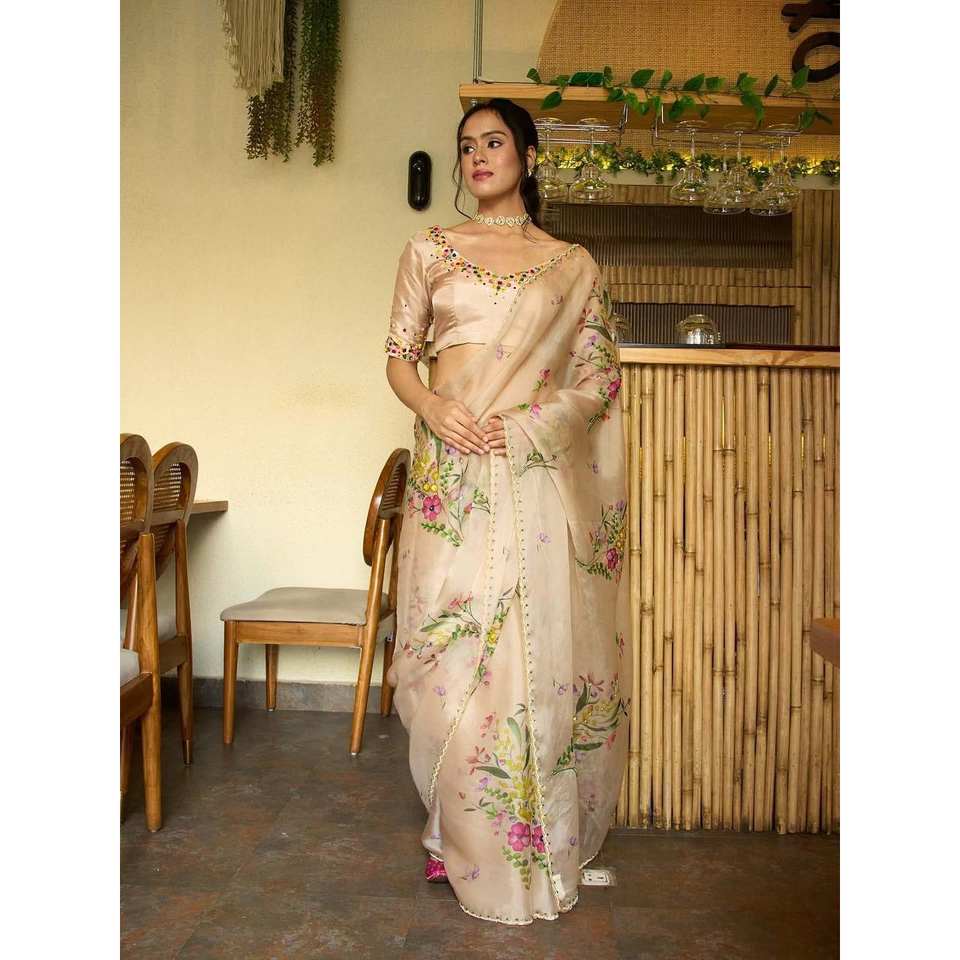 Nueva Colección de Saris Florales Hechos a Mano, Pañuelos y Chales Tradicionales
