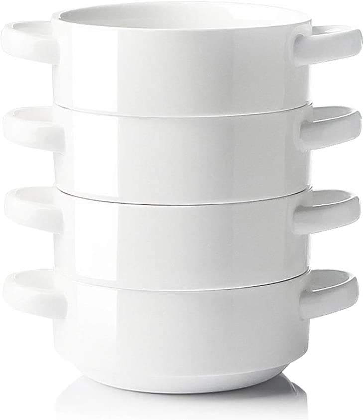 Cuencos de cerámica apilables para sopa, cebolla francesa, cereales, tartas, Pasta, 20oz, con doble mango