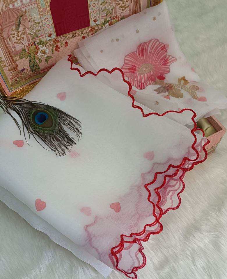 Sari de organza puro suave trabajo hecho a manoMaterial