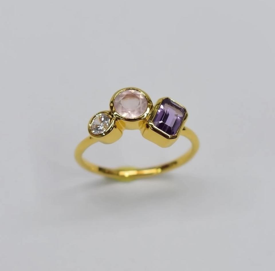 Nueva tendencia Anillos de lujo ligeros Joyería Plata de Ley 925 Listo para enviar S925 14K chapado en oro Mínima amatista natural