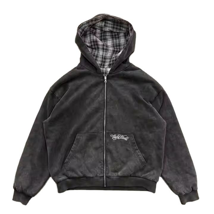 Nueva tendencia de lana Reversible para hombre de doble cara 100% algodón grabado personalizado cremallera invierno a prueba de viento Sudadera con capucha de secado rápido