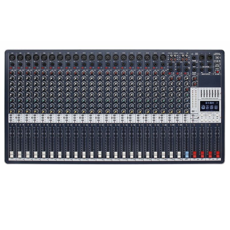 Nueva consola mezcladora profesional de canal de mezclador de audio de producto de tendencia con pantalla de cristal líquido de luz azul grande de 2,8 pulgadas