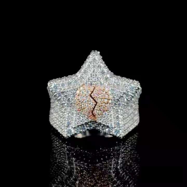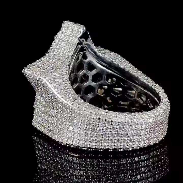 Nuevo Anillo de Moda Chapado en Rodio con Moissanita Cultivada en Laboratorio para Hombre, Claridad VS, Joyería Hip Hop, Anillos de Amistad con Diamantes
