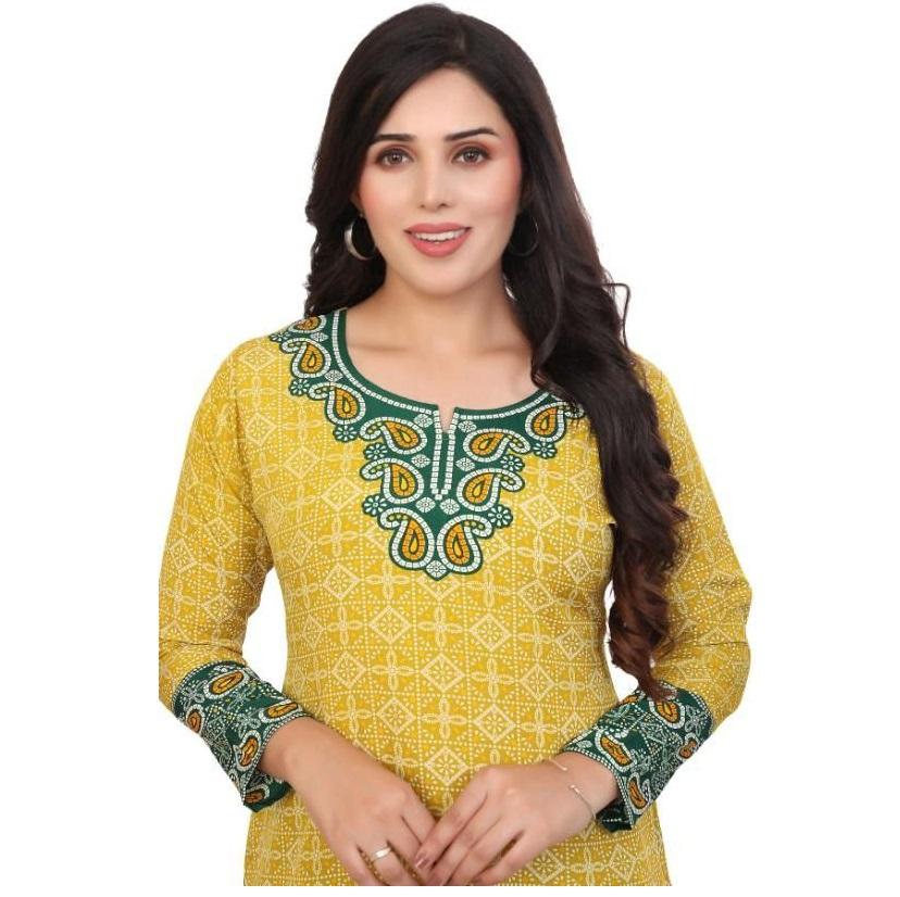 Nueva tendencia de algodón puro para mujer, Ajuste Recto, Kurti, yugo estampado frontal, hendidura lateral, verano, teñido liso, precio al por mayor, Exportación a granel