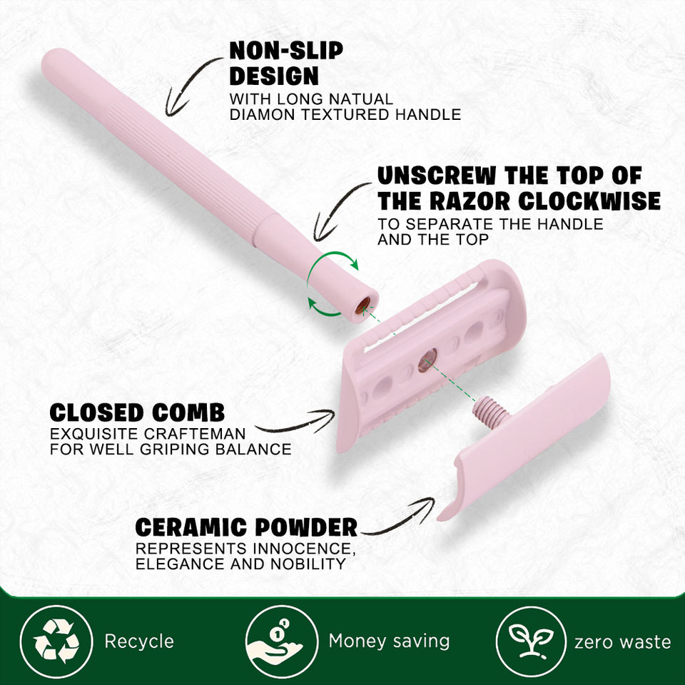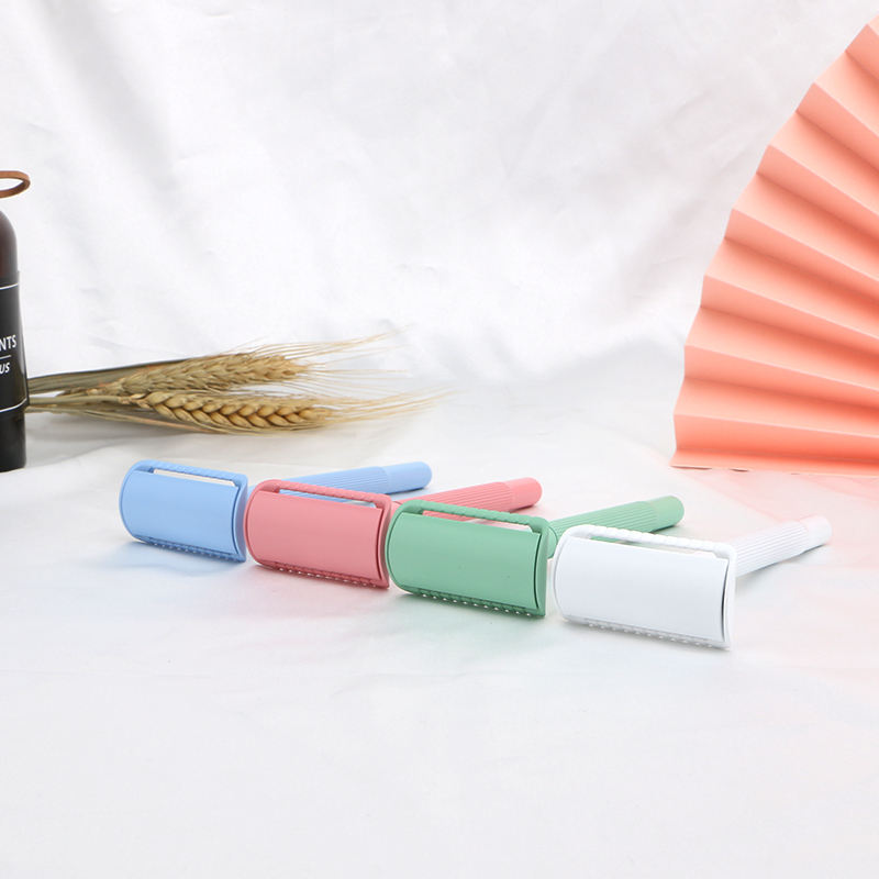 Nueva Tendencia: Maquinilla de Afeitar de Seguridad Sin Plástico, Mango de Latón de Nuevo Material, Maquinilla de Afeitar Clásica de 3 Piezas para el Afeitado Femenino