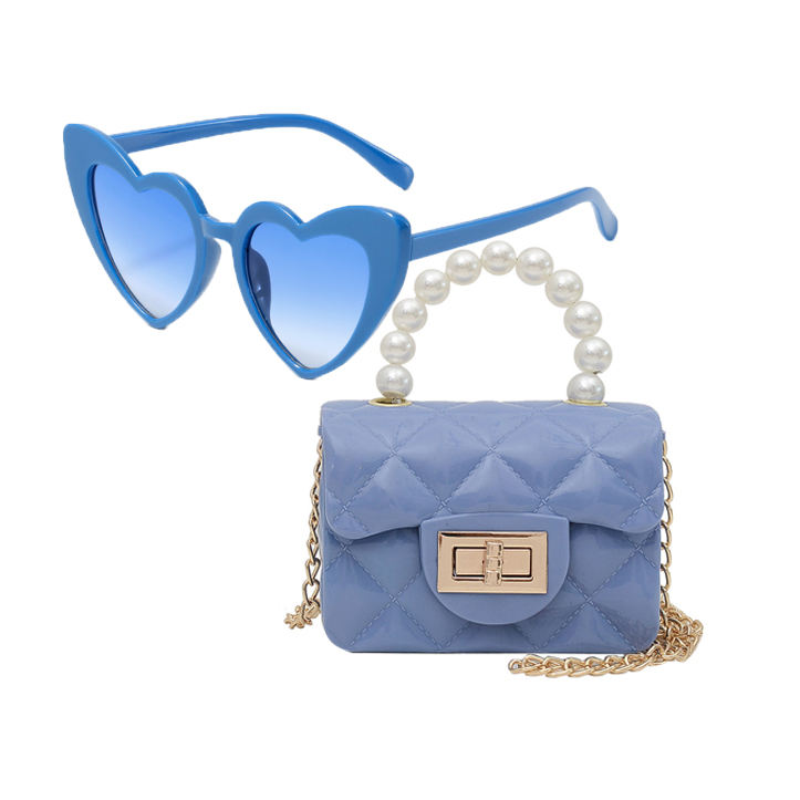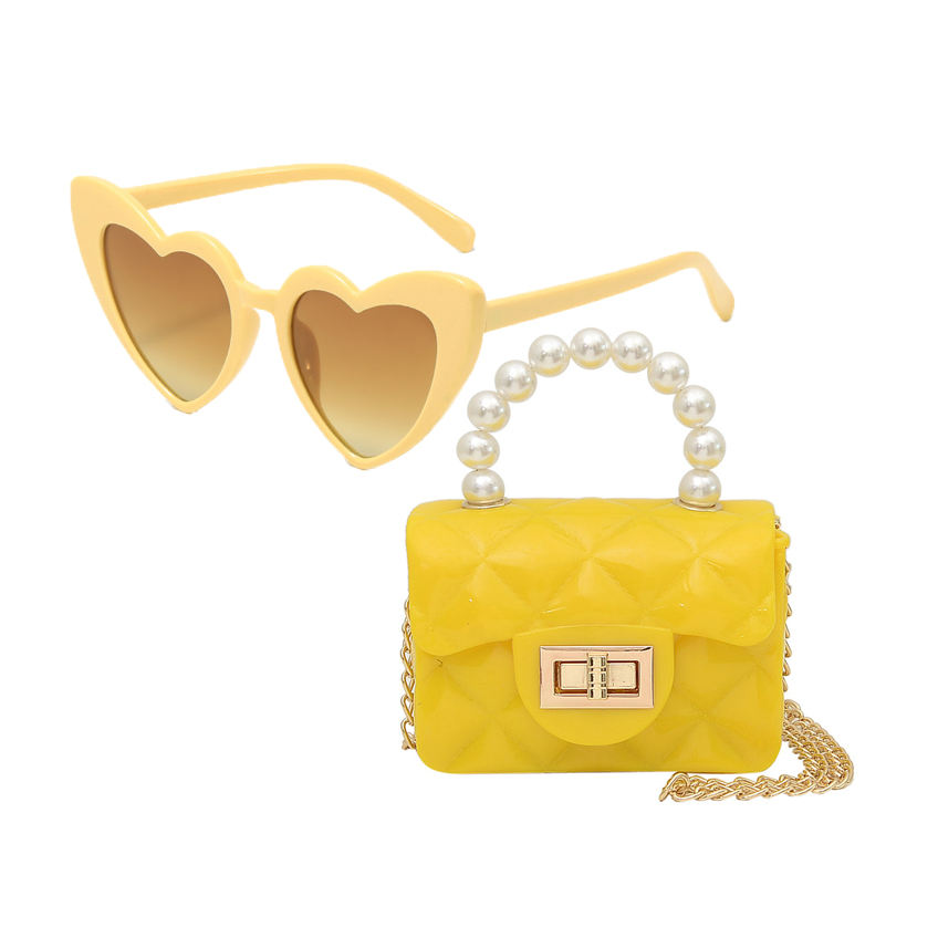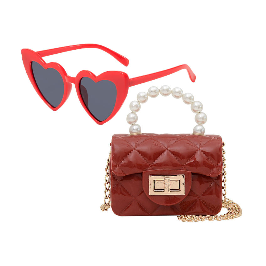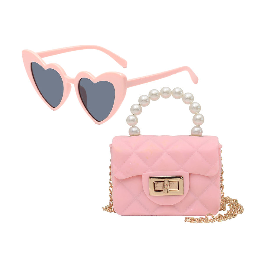 Nuevo Conjunto de Moda 2022, Lentes de Sol Transparentes en Forma de Corazón para Niños, Bolso Tipo Jelly, Conjunto de Lentes de Sol y Bolso