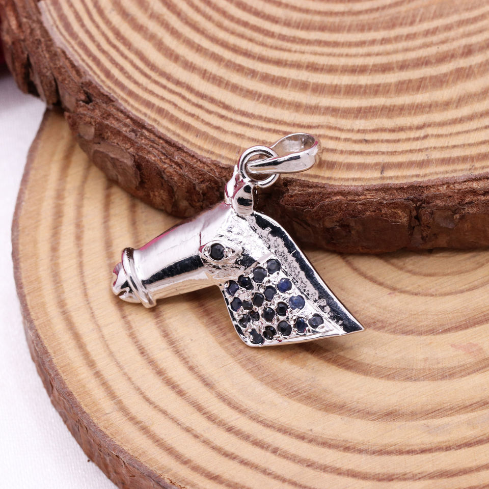 Nombre del elemento:Nuevo colgante de cabeza de caballo de moda con zafiro azul natural