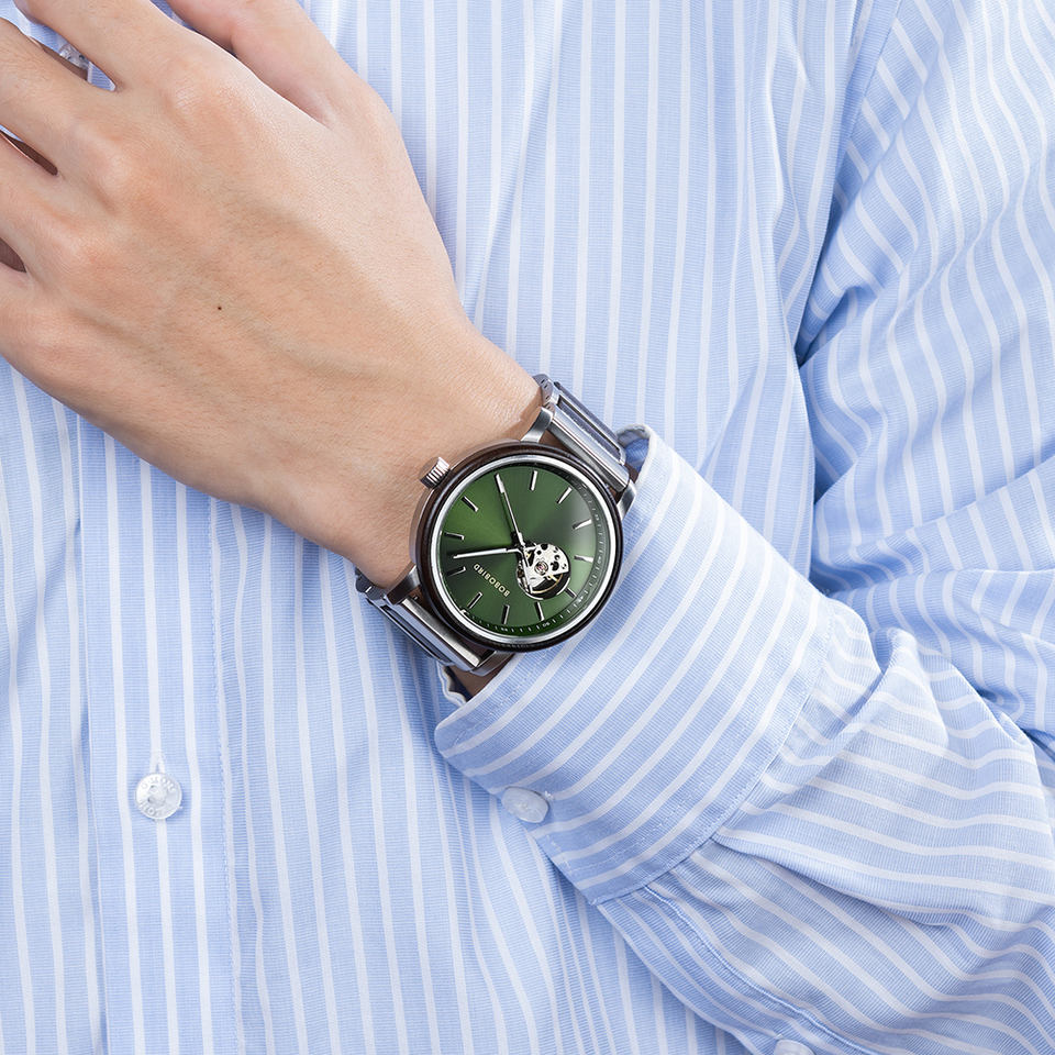 Orient Bambino Wind-Up Automático Acero Gris Esfera Verde Cristal 38 mm Reloj de pulsera para hombre