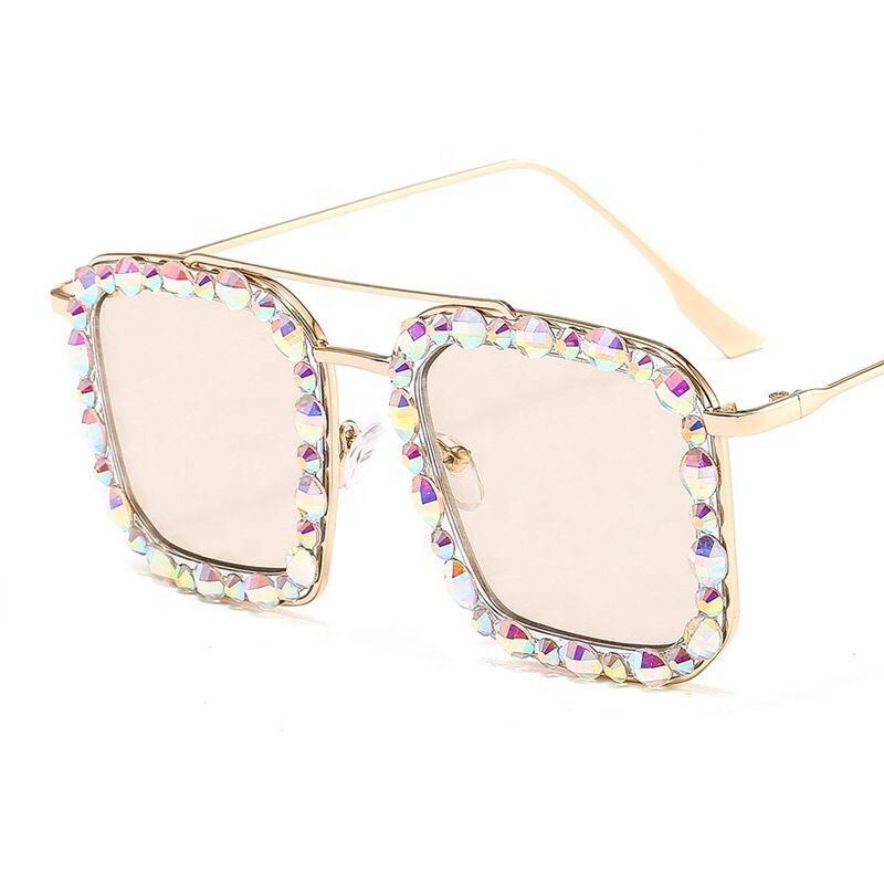 Nuevas gafas de sol sin marco de calle de moda 2021 lentes de espejo de diamante cuadrado sin montura de moda para mujer