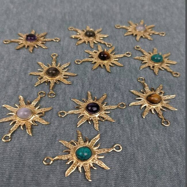 Piedra:Ojo de Tigre, ónix, amazonita, amatista, piedra de Luna, labradorita