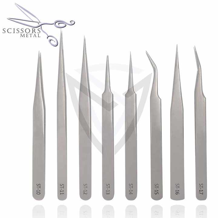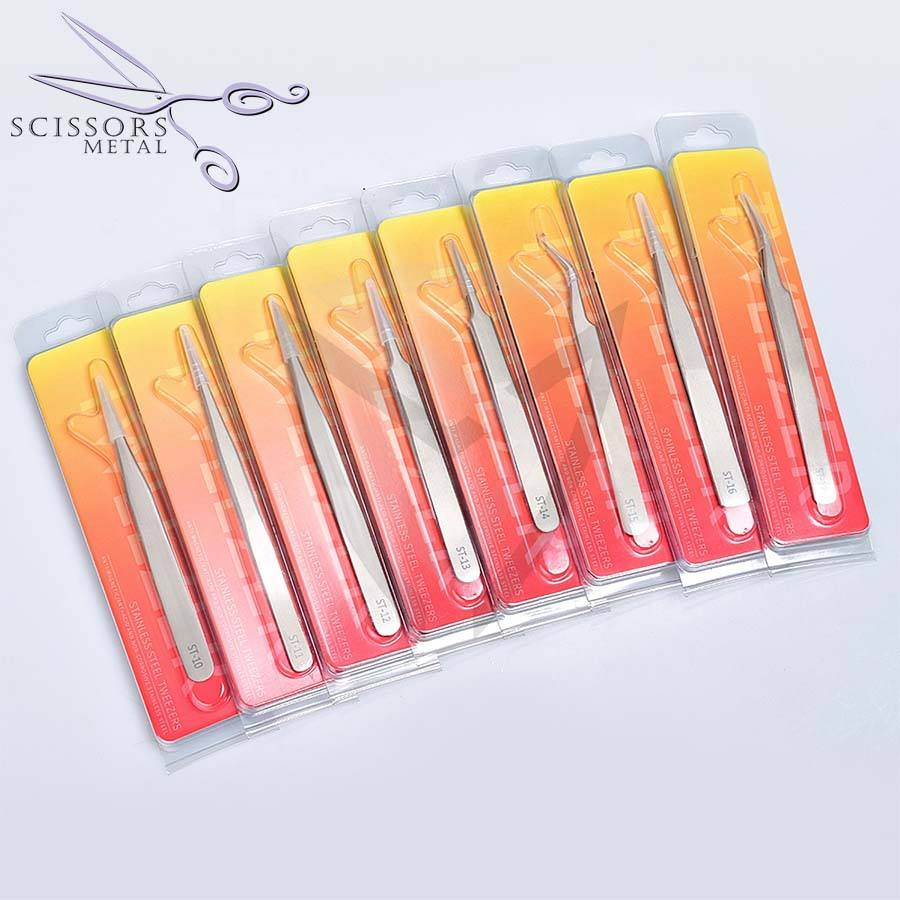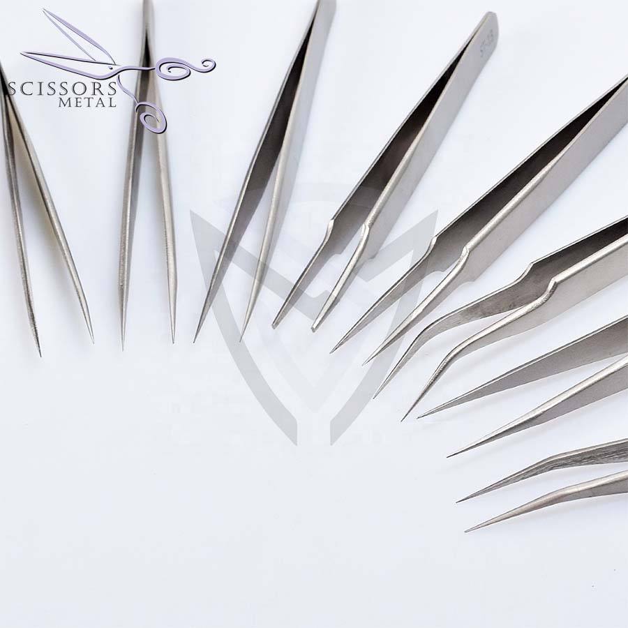 Pinzas para Extensión de Pestañas de Acero Inoxidable de Grado Quirúrgico, Nuevas, con Mango de Textura de Diamante Negro y Dorado, Duraderas, de Precisión, con Logotipo Personalizado