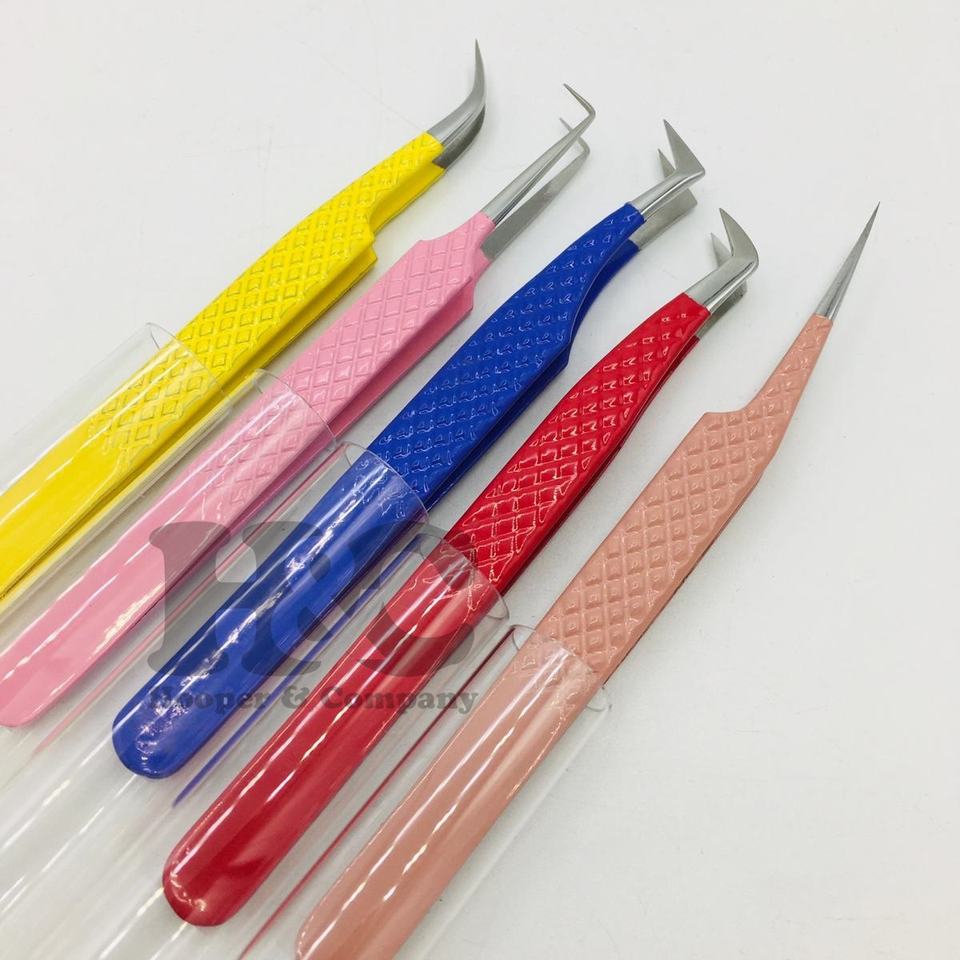 Pinzas nuevas con logotipo sostenible, juego de pinzas para extensión de pestañas de acero inoxidable, pinzas de visón en polvo multicolor, tubo de embalaje