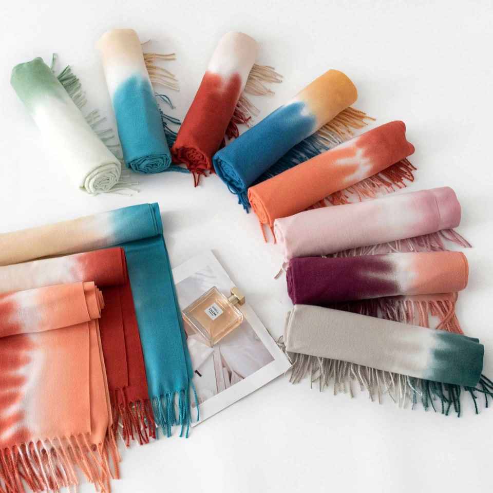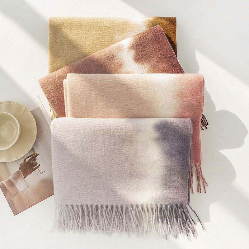 Nuevo Bufanda de Dos Tonos para Otoño e Invierno, Bufanda de Moda con Estampado Tie Dye, Cálida, para Mujer