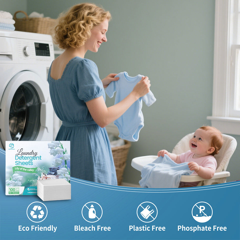 Tiras de Lavandería Enzimáticas de Marca Blanca, Nuevas, Ecológicas, Hojas de Detergente para Lavandería de Viaje, OEM, Hojas de Lavandería Biodegradables
