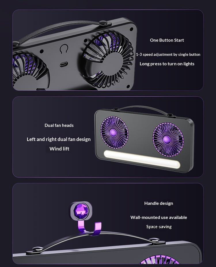 Nuevo Ventilador de Escritorio USB Recargable con Diseño de Doble Cabezal y Gran Flujo de Aire, Tamaño Compacto