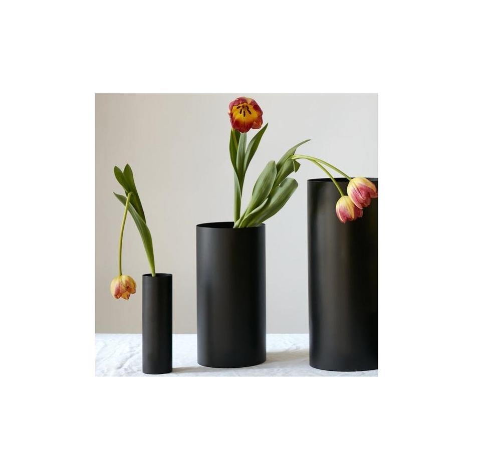 Nuevo Florero de Metal con Forma de Cilindro con Recubrimiento de Polvo Negro Ultimate, Floreros con Acabado de Alta Calidad
