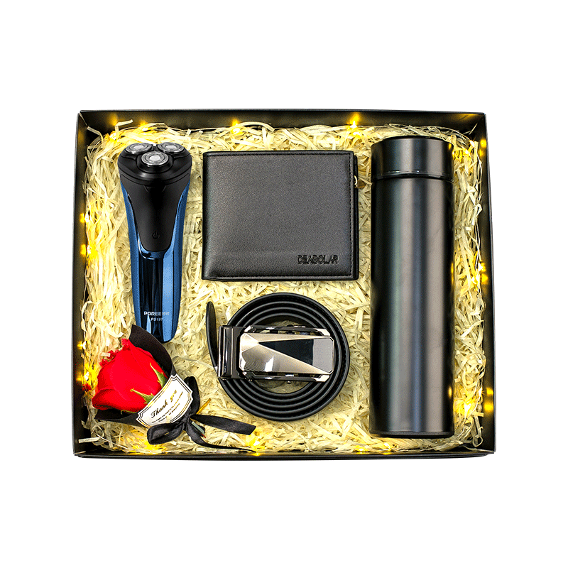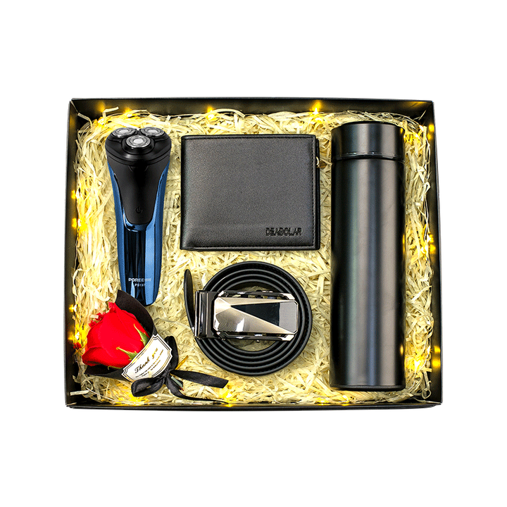 Conjunto de regalo de San Valentín para hombres, afeitadora única de conferencia, BILLETERA, cinturón, frasco de vacío, Rosa romántica, novedad