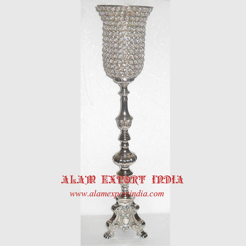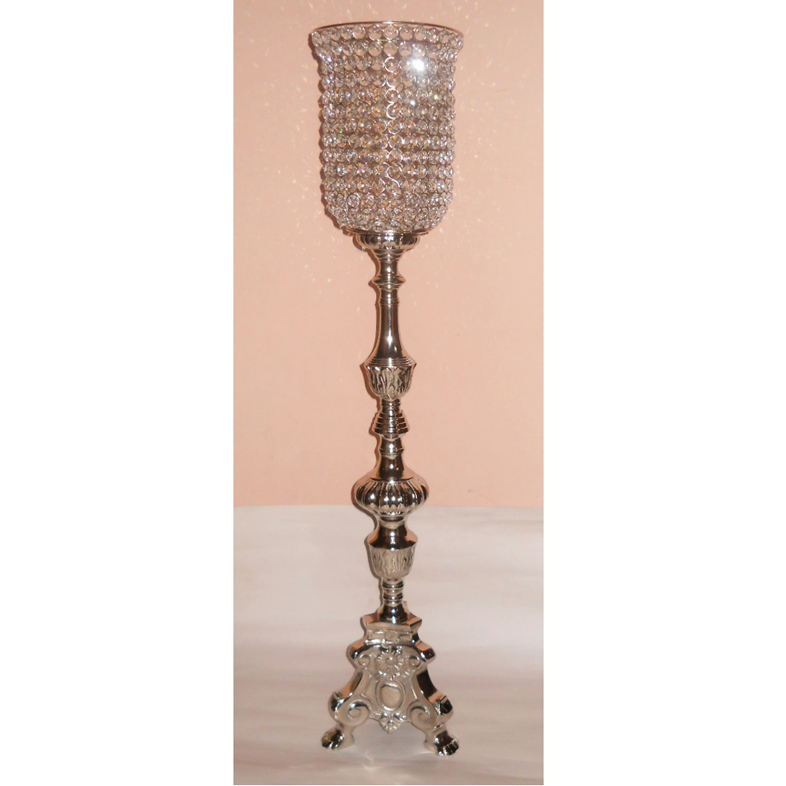 Nuevo diseño único, centro de mesa de boda de cristal moderno, tamaño alto, Metal, aluminio, acabado plateado para decoraciones de mesa de boda