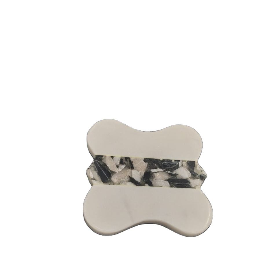 Posavasos de mármol blanco con forma de hueso único con rayas de terrazo negro posavasos de mármol hecho a mano decoración artística de Mesa para el hogar