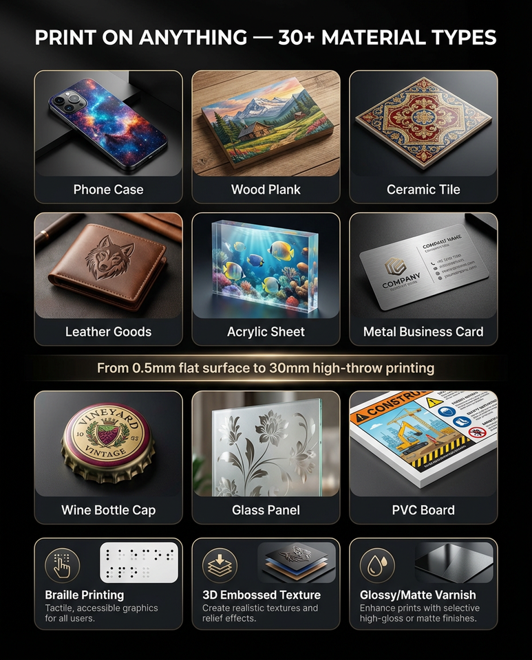 Sustrato de impresión:madera vidrio metal PVC plástico botella acrílico cuero