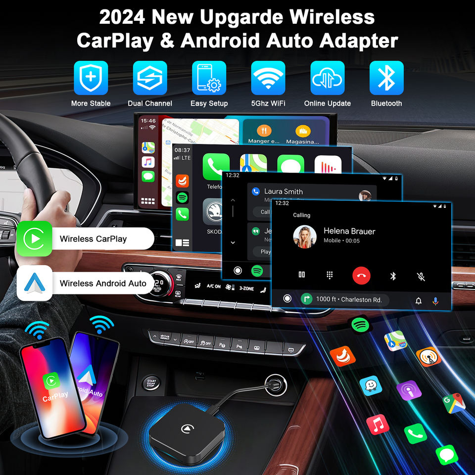 Nueva actualización Plug & Play Wireless CarPlay Android Auto adaptador para coche