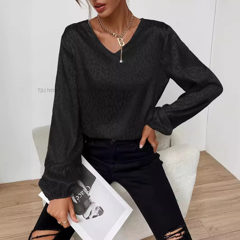 Nueva Blusa de Manga Larga con Estampado de Leopardo y Cuello en V para Mujer, Blusa de Jacquard a la Moda