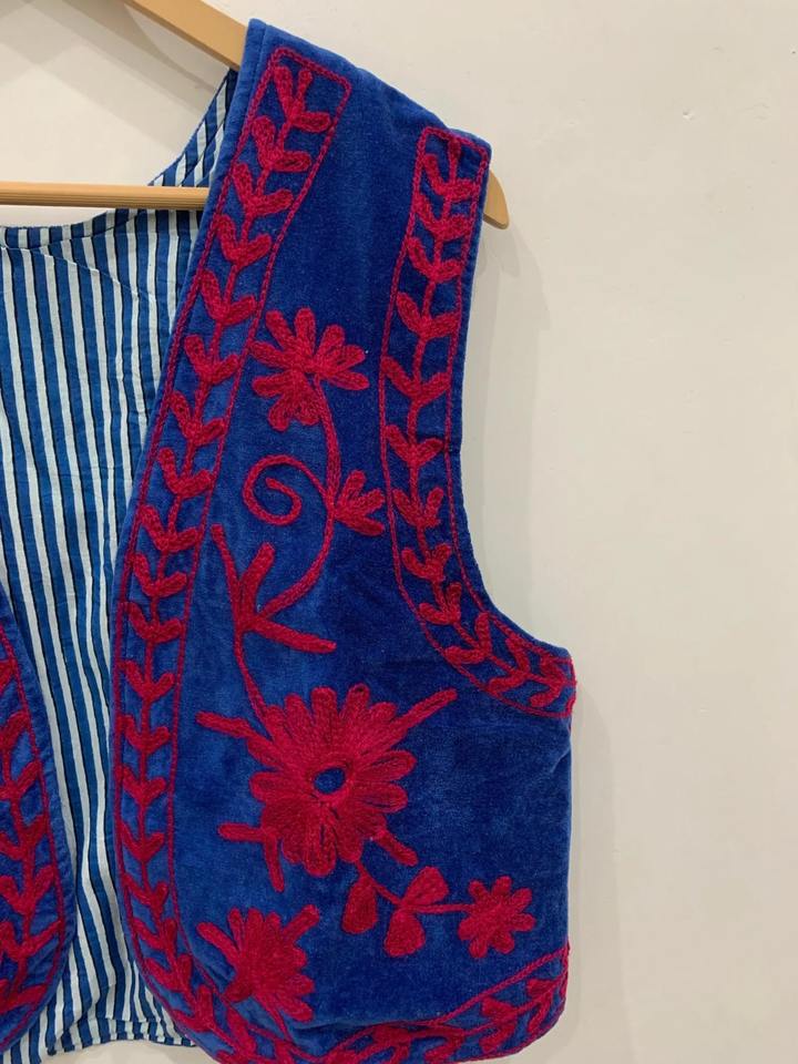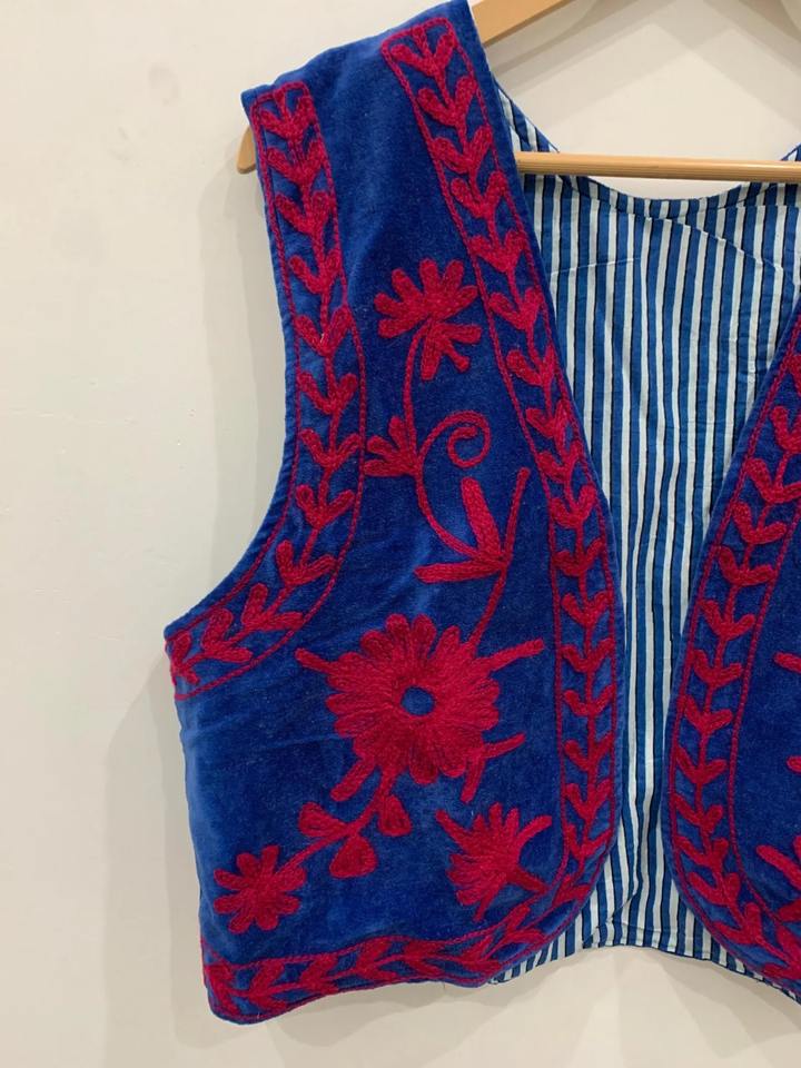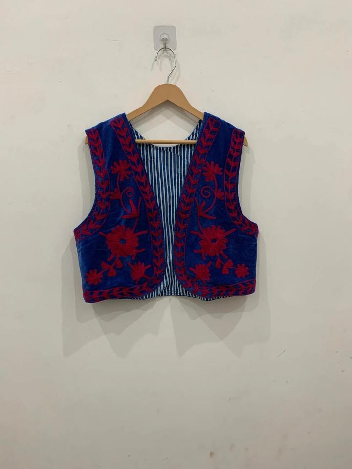 Product name:Handmade Yellow Suzani Velvet Front Open Waistcoat
