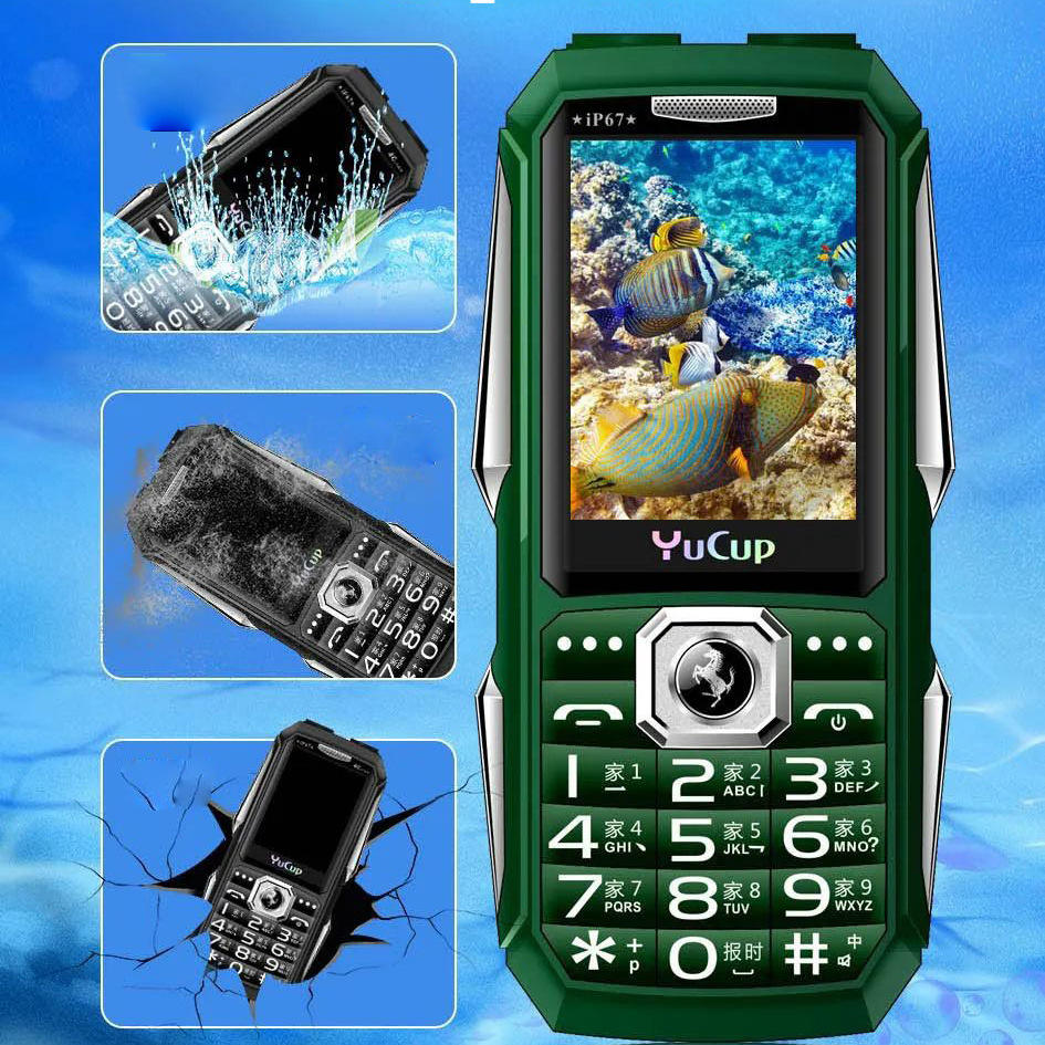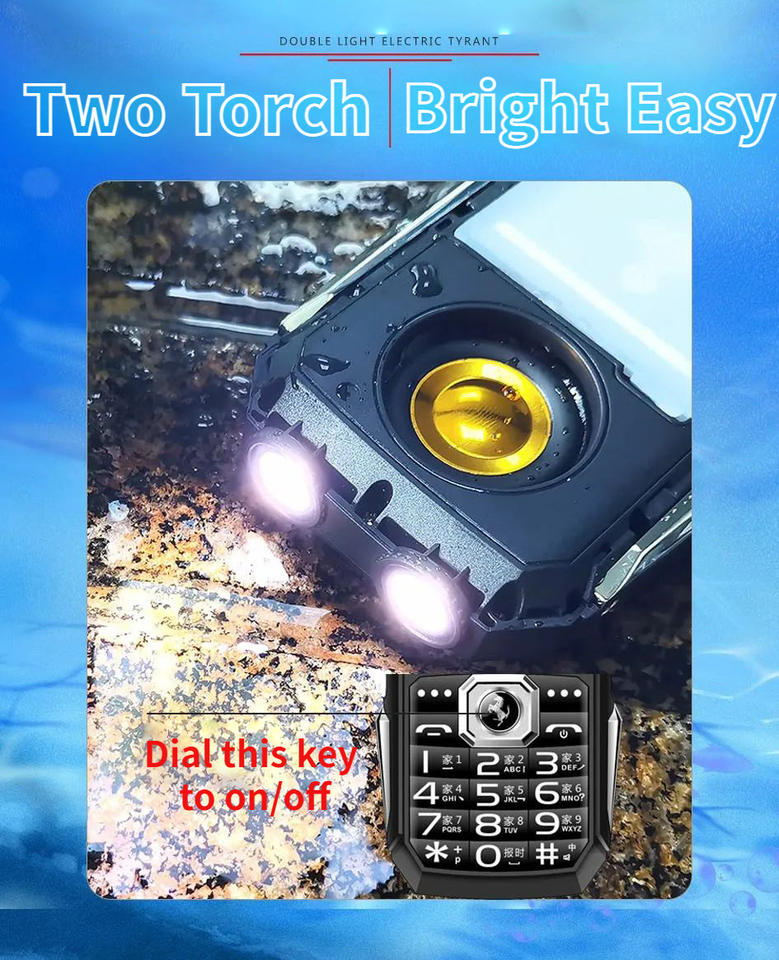 Mini teléfono móvil resistente al agua IP67, linterna a prueba de caídas para dos manos, altavoz grande, botón grande, eléctrico