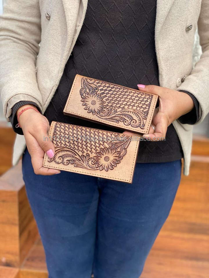 Nuevo diseñador occidental, billetera larga de cuero tallado a mano Real para hombre, superventas, soporte para efectivo elegante a la moda, regalo para él