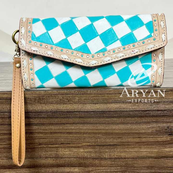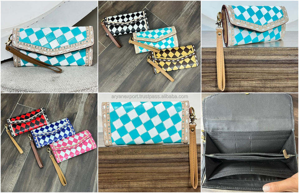 Nombre del producto:Cartera de mano de cuero repujado a cuadros
