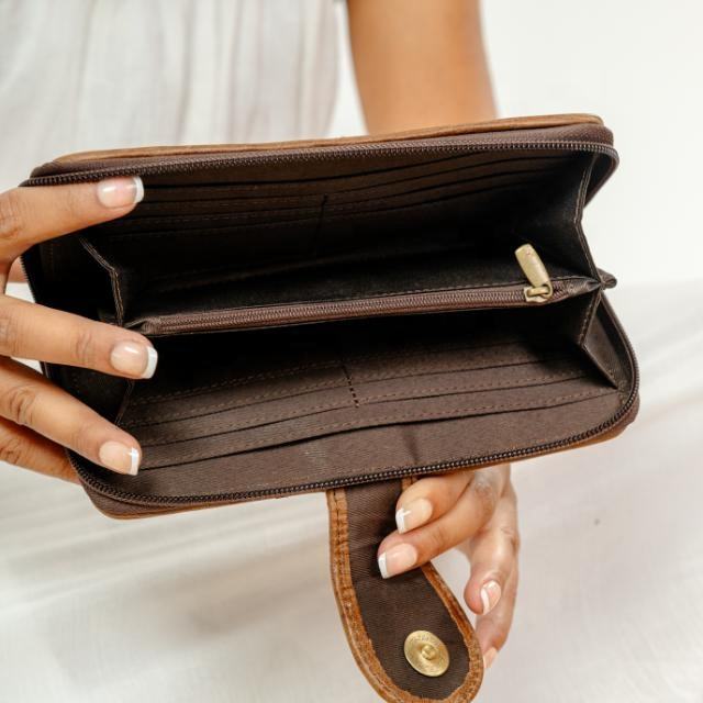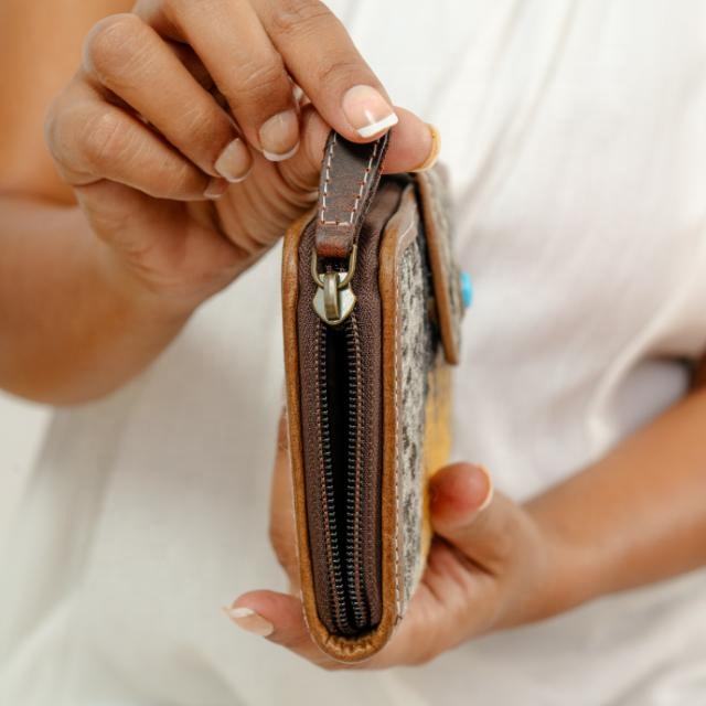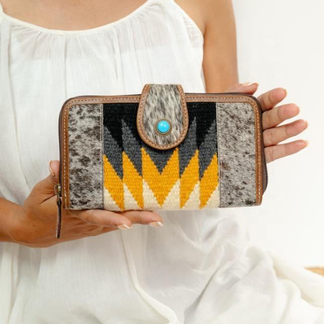 Nuevo estilo occidental, embrague de cuero con herramientas aztecas, Real hecho a mano, herramientas marrones Vintage, diseño único de baraja de tarjetas, billetera de cuero