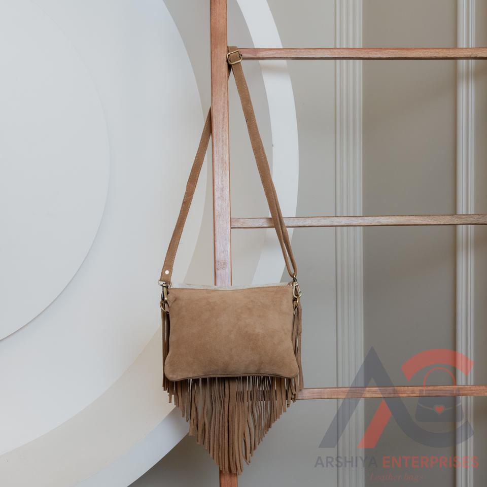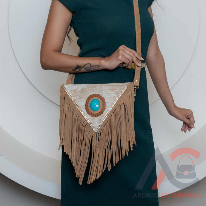 Nombre del producto:Bolso de piel de vacuno auténtica hecho a mano con flecos de piel