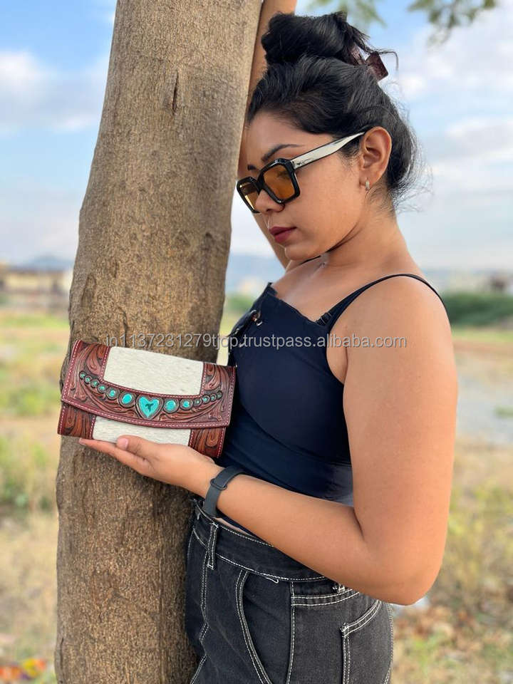 Type:Stylish Tooled Fur Leather Clutch Purse