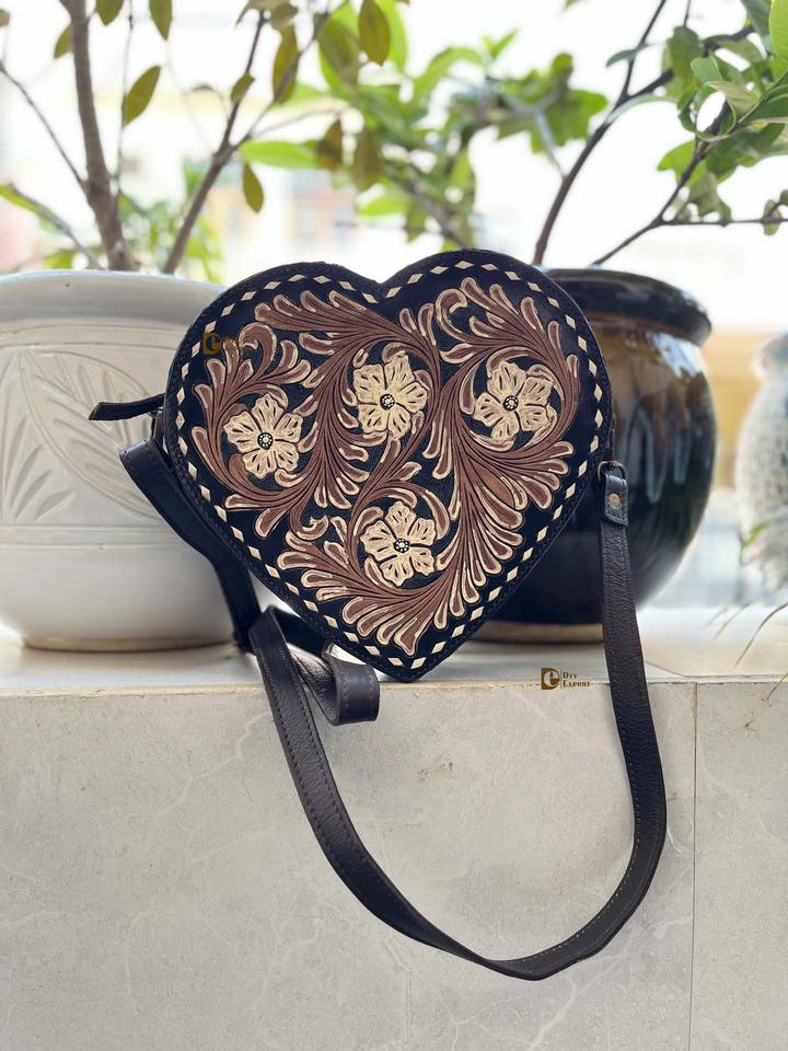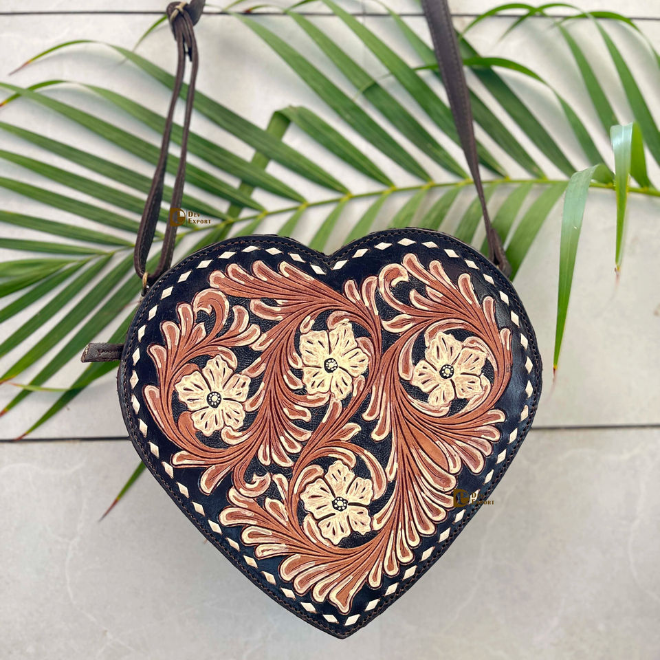 Nuevo estilo occidental herramientas de mano tallado elegante bolso en forma de corazón Sling Bag patrón de moda Crossbody bolsos de hombro de las mujeres