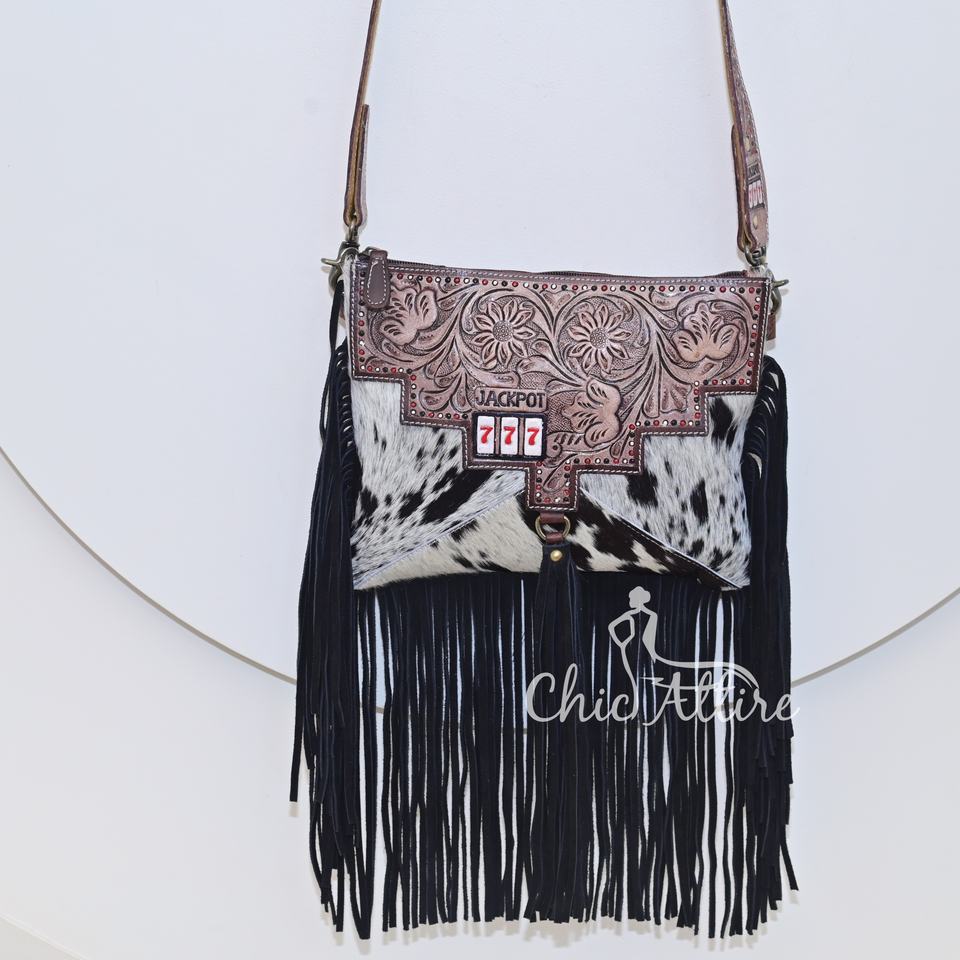 Product name:Tooled Fur Leather Women Hand Bags