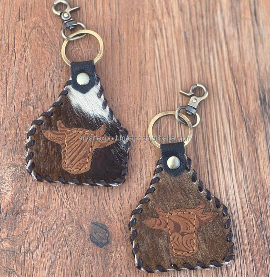 Type:Western Stylish Hair On Hide Leather Stitched Key Fob