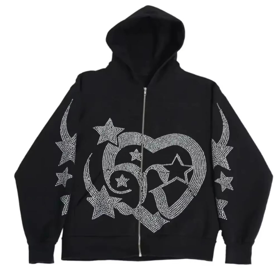 Sudadera con capucha de diamantes de imitación para hombre personalizada al por mayor, Sudadera con capucha térmica de peso pesado