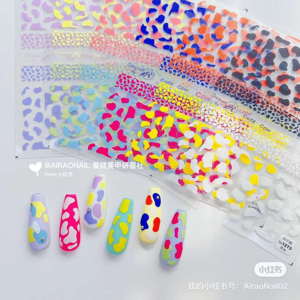 Nueva pegatina al por mayor para uñas, pegatinas ultrafinas coloridas de grano de vaca para uñas