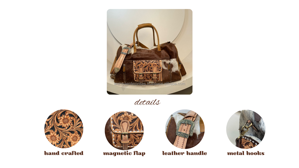 Nombre del producto:Bolso de viaje de cuero de vaca repujado a mano