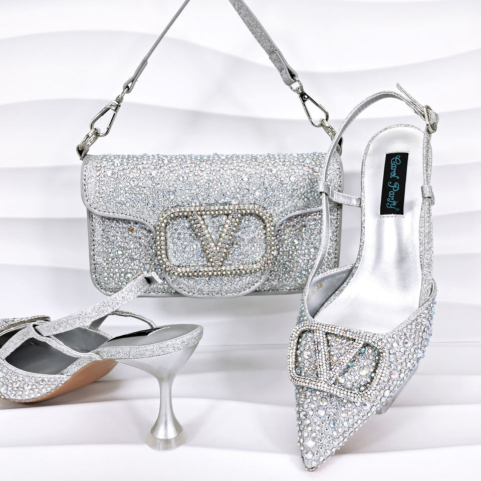 Nuevos Zapatos de Novia Italianos Suaves de Talla Grande con Juego de Bolso de Mano a Juego para Fiesta de Bodas, Tacón Alto