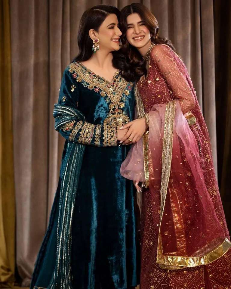 Nuevo Conjunto Formal de 2 Piezas de Kurti y Pantalón de Terciopelo con Patrón de Encaje Bordado para Invierno