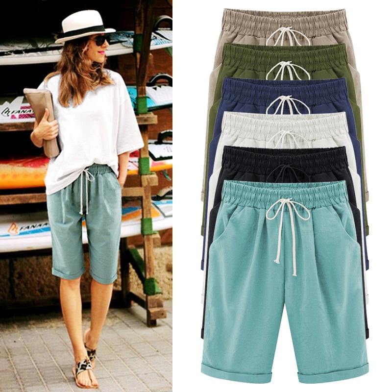 Nuevos pantalones cortos de tabla para mujer, cintura elástica informal, ajuste Regular, transpirable con bolsillo, moda para verano