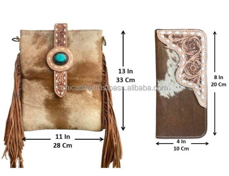 Product name:Hand Tooled Leather Cowhide Bag & Wallet Set
